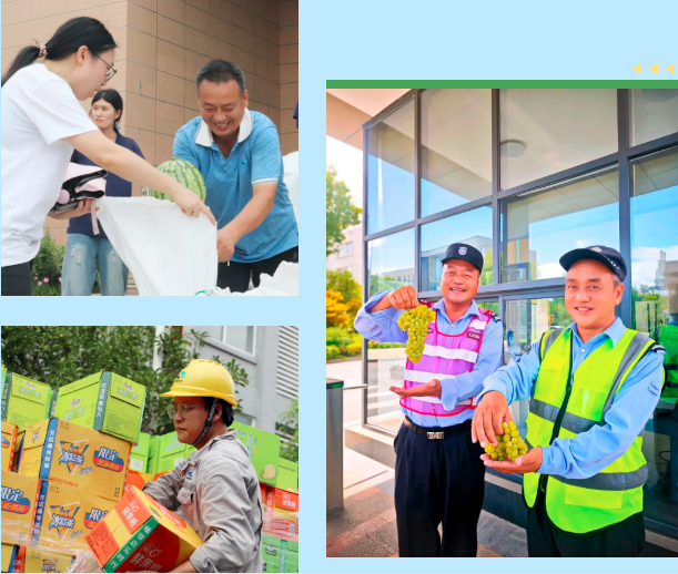 新疆葡萄、冰镇西瓜、绿豆汤、酸梅汤、解渴饮料轮番上阵,“清凉补给站”开进车间,成了员工们的“能量加油站”。喝上一口,瞬间驱散大半暑气。